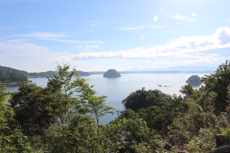 防己尾城は日本最大の池である湖山池西側の小さな半島に築かれました。